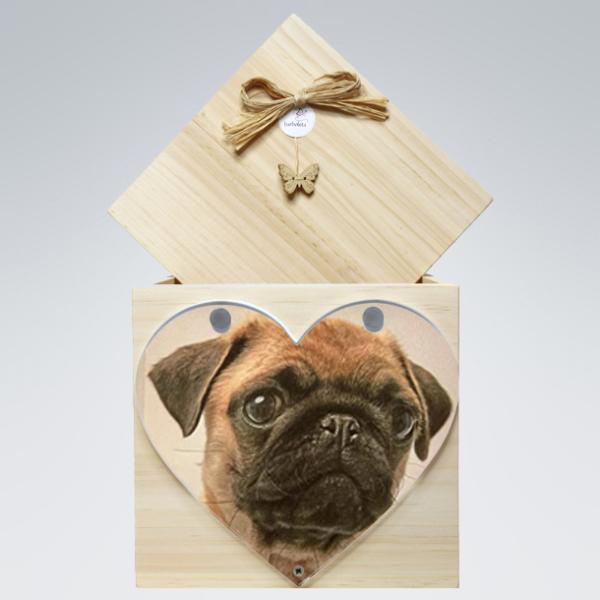 Hinter „Brankas“ abnehmbarer Plexiglas-Scheibe können Sie z.B. Fotos, Zeichnungen, Haare oder auch Pfötchen-Abdrücke Ihres Lieblings platzieren und „Branka“ somit ganz individuell nach Ihren Wünschen und Vorstellungen gestalten. Im Inneren kann „Branka“ z.B. die Asche Ihres Tieres oder aber auch gesammelte Erinnerungen an Ihren Liebling sicher bewahren.