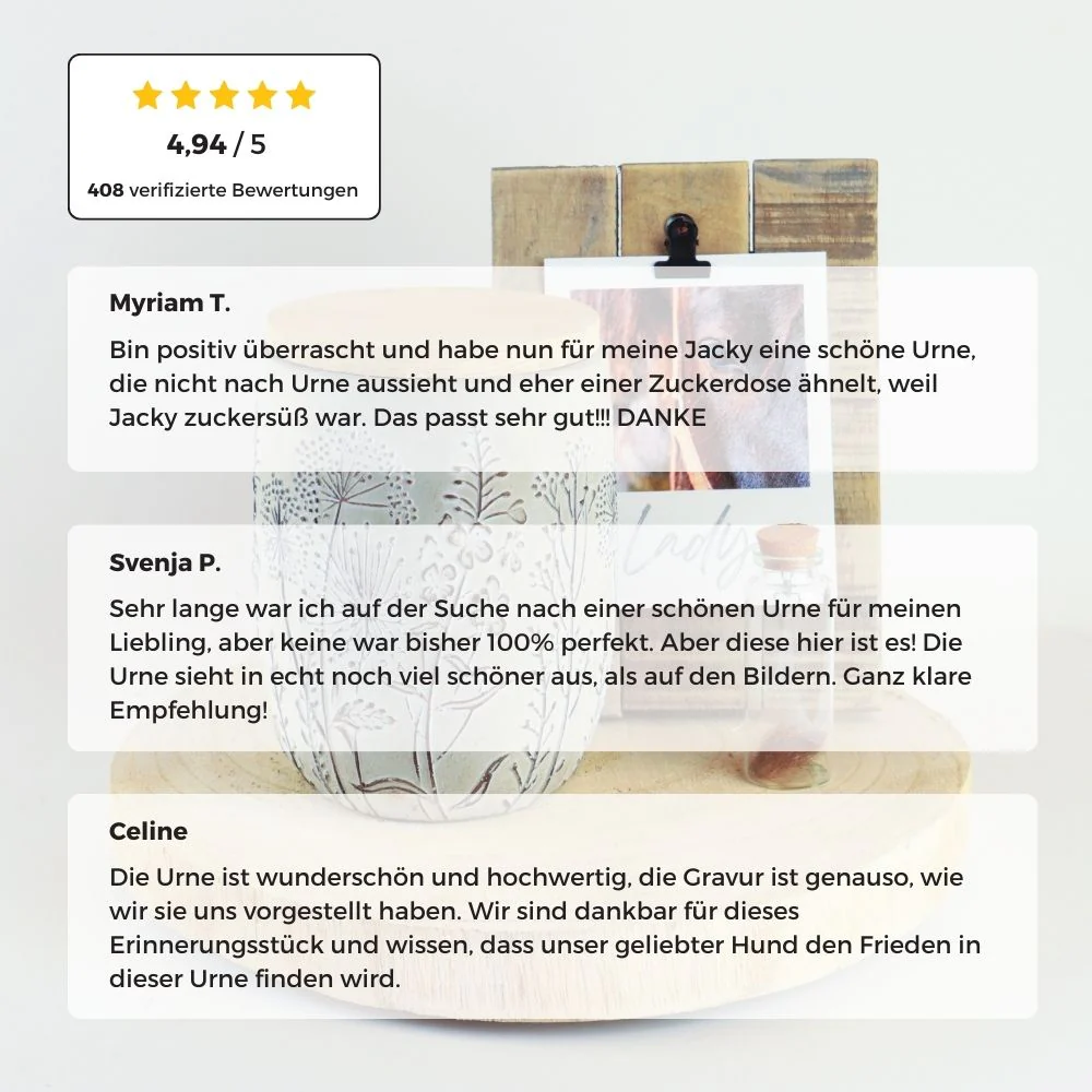 Hochwertige Keramik Tierurne. Hier kannst du die Asche deines geliebten Haustiers aufbewahren.