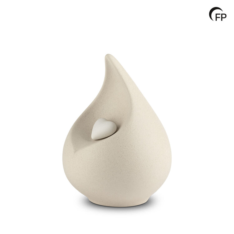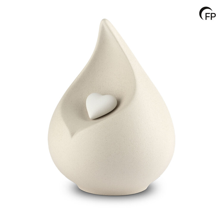 Diese stilvolle Tierurne aus hochwertigem Porzellan besticht durch ihre sanfte Tropfenform und klare Linienführung.
